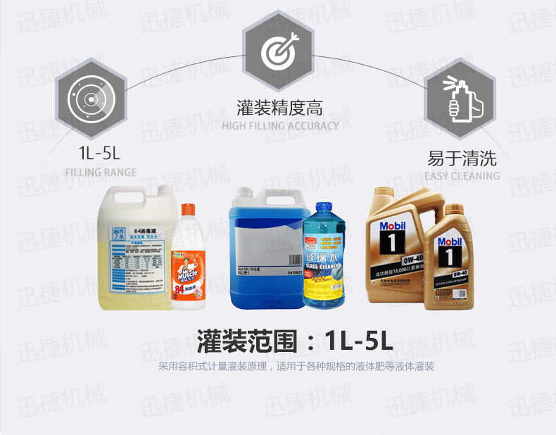 4、全自動洗手液液體灌裝機灌裝量調(diào)整方便,不需更換零配件,即可適用于不同規(guī)格的瓶子,調(diào)整方便,適應(yīng)性強;